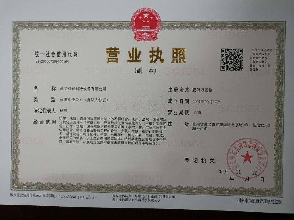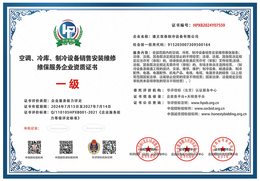 空調(diào)、冷庫(kù)、制冷設(shè)備銷售安裝維修維保服務(wù)企業(yè)資質(zhì)證書