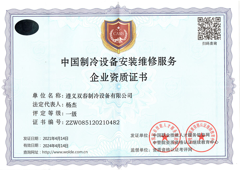 中國(guó)制冷設(shè)備安裝維修服務(wù)企業(yè)資質(zhì)證書