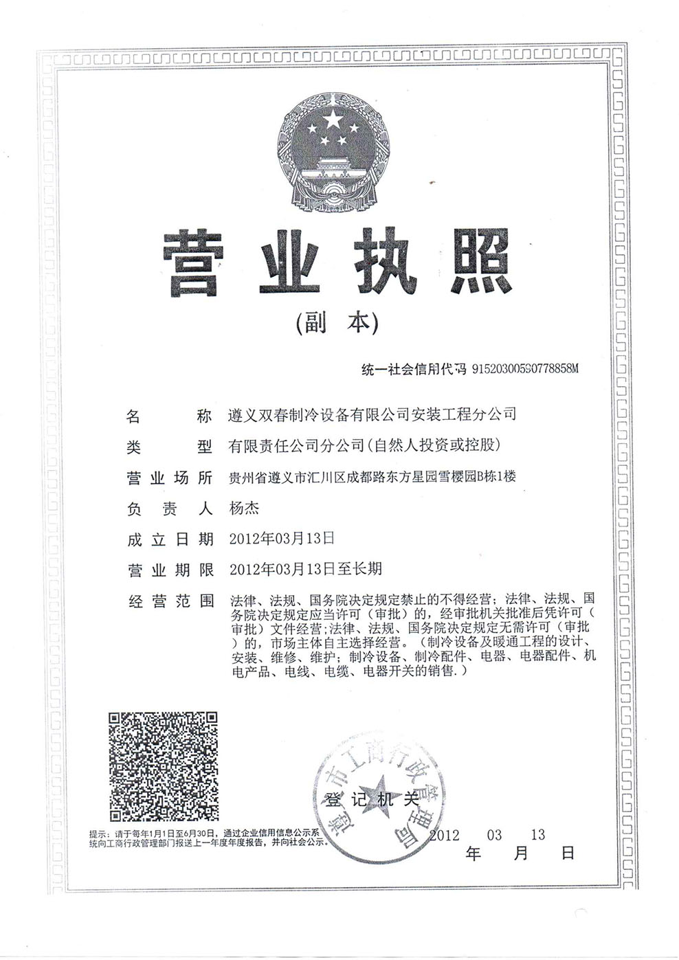 分公司營(yíng)業(yè)執(zhí)照
