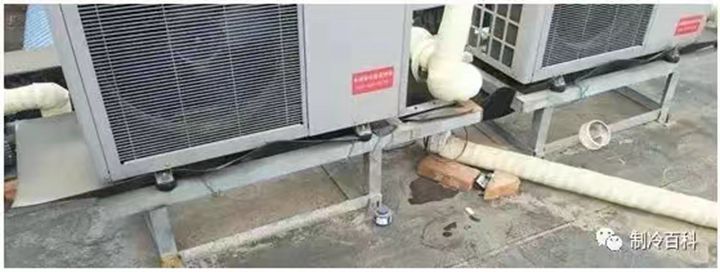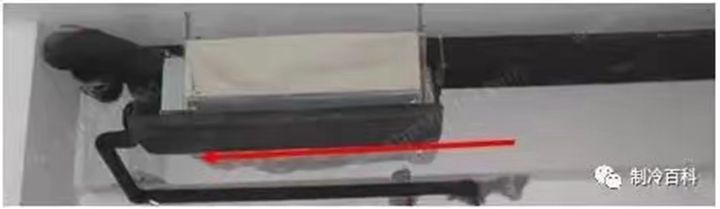 3、冷凝水管安裝不良導致排水不暢,積水從積水盤溢出,冷凝水管安裝無坡度